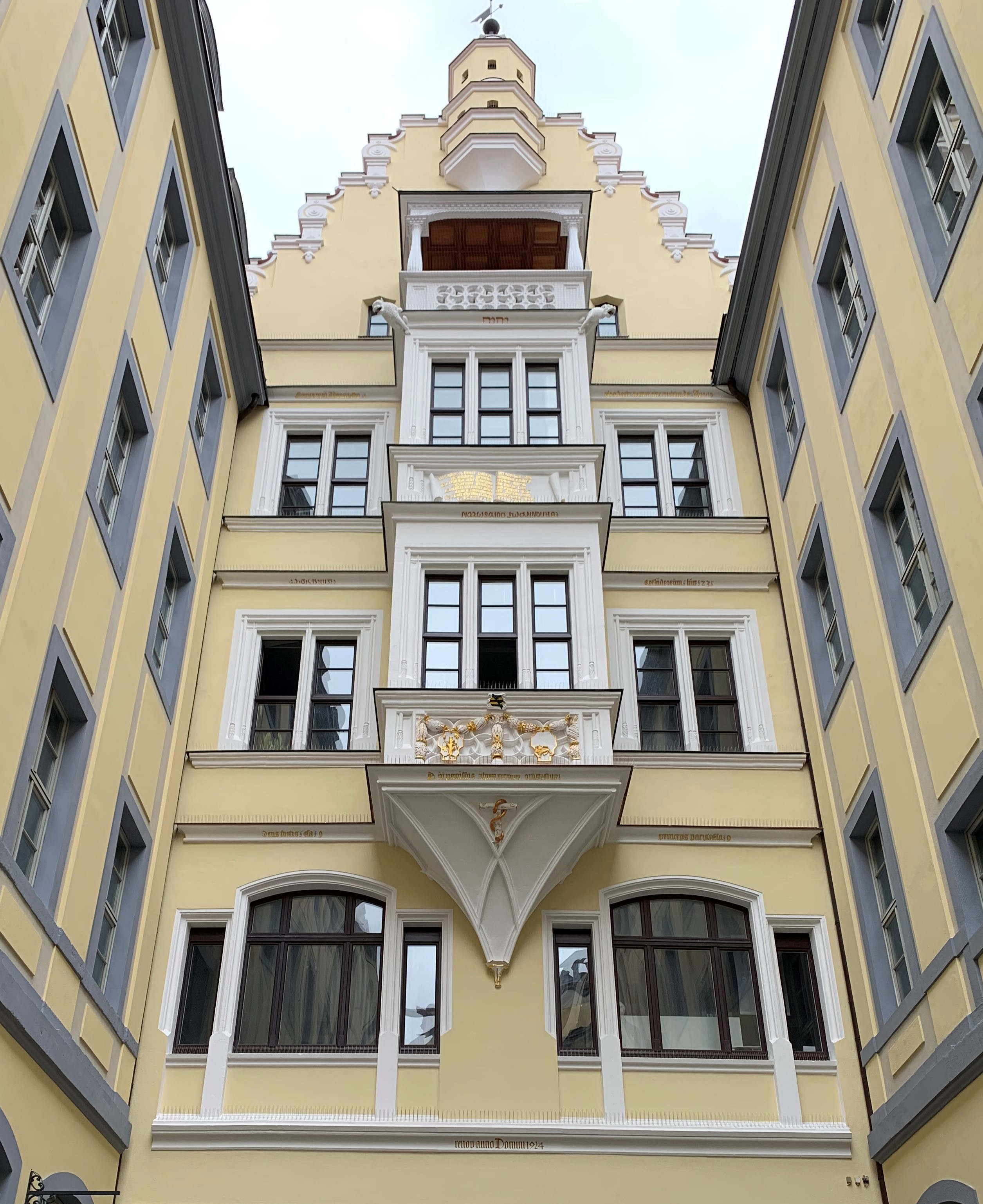 3. Reihe v. l. n. r. Wappen vom Barthels Hof, Webers Hof, Barfußgäßchen